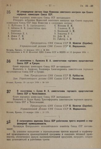 Об утверждении состава бюро Комиссии советского контроля при Совете народных комиссаров Союза ССР. 11 февраля 1934 г. № 232