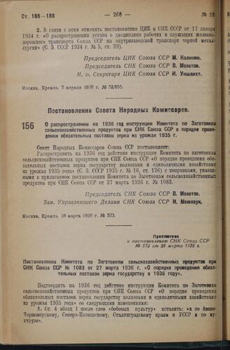 Главная Собрание законов и распоряжений правительства РСФСР и СССР Собрание законов и распоряжений Рабоче-Крестьянского Правительства ... Собрание законов и распоряжений Рабоче-крестьянского правительства ... Собрание законов и распоряжений Рабоче-Крестьянского правительства ... Документы Постановление Совета Народных Комиссаров. О распространении на 1936...