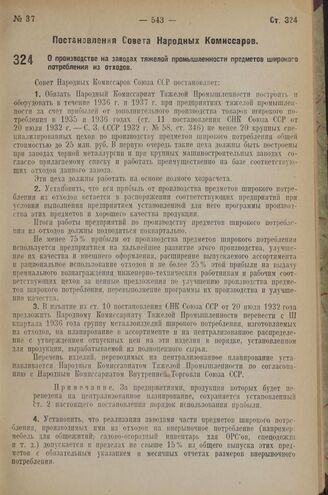 Постановление Совета Народных Комиссаров. О производстве на заводах тяжелой промышленности предметов широкого потребления из отходов. 7 июля 1936 г. № 1193
