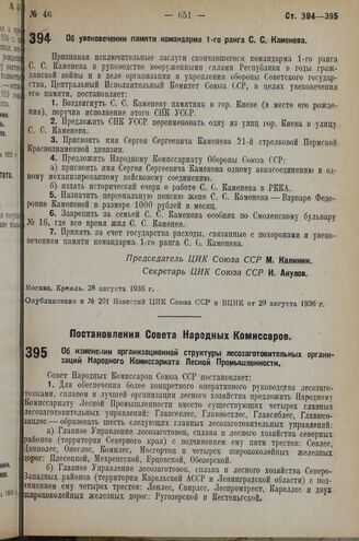 Постановление Совета Народных Комиссаров. Об изменении организационной структуры лесозаготовительных организаций Народного Комиссариата Лесной Промышленности. 2 сентября 1936 г. № 1605