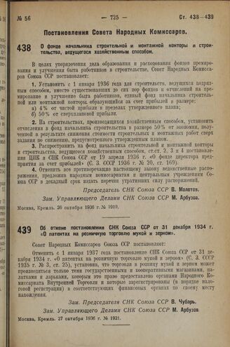 Главная Собрание законов и распоряжений правительства РСФСР и СССР Собрание законов и распоряжений Рабоче-Крестьянского Правительства ... Собрание законов и распоряжений Рабоче-крестьянского правительства ... Собрание законов и распоряжений Рабоче-Крестьянского правительства ... Документы Постановление Совета Народных Комиссаров. О фонде начальника строит...
