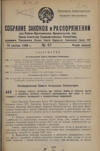 Главная Собрание законов и распоряжений правительства РСФСР и СССР Собрание законов и распоряжений Рабоче-Крестьянского Правительства ... Собрание законов и распоряжений Рабоче-крестьянского правительства ... Собрание законов и распоряжений Рабоче-Крестьянского правительства ... Документы Постановление Совета Народных Комиссаров. О порядке оплаты колхозам...