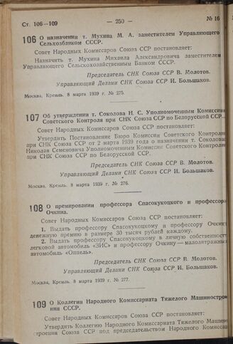 Собрание постановлений и распоряжений правительства СССР за 1939 г. № 1-37. Отдел первый. — М., б. г.