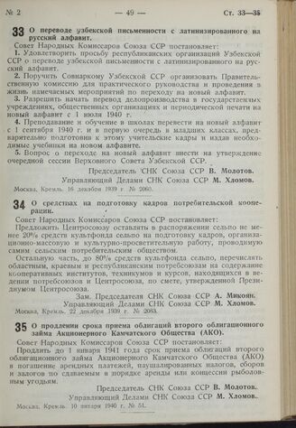 Постановление Совета Народных Комиссаров. О переводе узбекской письменности с латинизированного на русский алфавит. 16 декабря 1939 г. № 2060