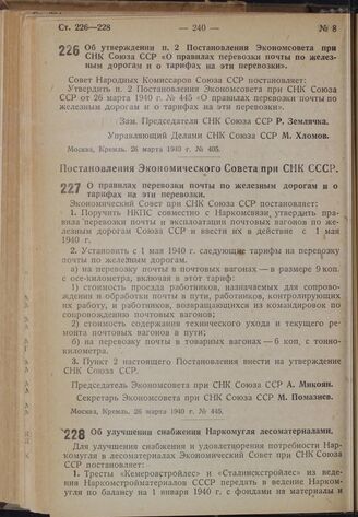 Собрание постановлений и распоряжений правительства СССР за 1940 г. № 1-15. — М., б. г.