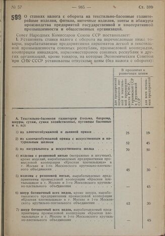 Главная Собрание законов и распоряжений правительства РСФСР и СССР Собрание законов и распоряжений Рабоче-Крестьянского Правительства ... СЗ СССР 39(1) Собрание постановлений и распоряжений правительства СССР за 1939 г.... Документы Постановление Совета Народных Комиссаров. О ставках налога с оборот...