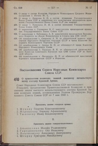Главная Собрание законов и распоряжений правительства РСФСР и СССР Собрание законов и распоряжений Рабоче-Крестьянского Правительства ... Собрание постановлений и распоряжений правительства СССР за 1940 г. Собрание постановлений и распоряжений правительства СССР за 1940 г.... Документы Постановление Совета Народных Комиссаров Союза ССР. О присвоении во...