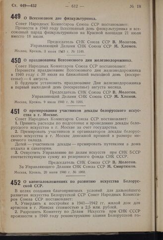 Постановление Совета Народных Комиссаров Союза ССР. О Всесоюзном дне физкультурника. 3 июля 1940 г. № 1149