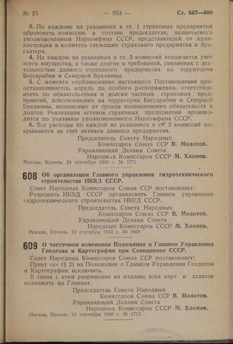 Постановление Совета Народных Комиссаров Союза ССР. О частичном изменении Положения о Главном Управлении Геодезии и Картографии при Совнаркоме СССР. 16 сентября 1940 г. № 1717