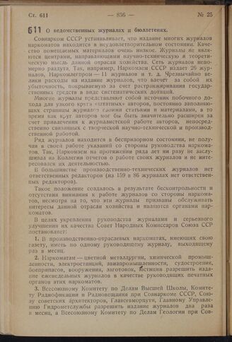 Постановление Совета Народных Комиссаров Союза ССР. О ведомственных журналах и бюллетенях. 7 сентября 1940 г. № 1646