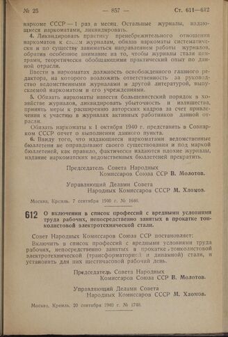 Главная Собрание законов и распоряжений правительства РСФСР и СССР Собрание законов и распоряжений Рабоче-Крестьянского Правительства ... Собрание постановлений и распоряжений правительства СССР за 1940 г. Собрание постановлений и распоряжений правительства СССР за 1940 г.... Документы Постановление Совета Народных Комиссаров Союза ССР. О включении в с...
