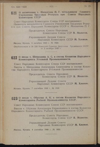 Известия Советов Депутатов Трудящихся СССР от 3 октября 1940 г., № 230.