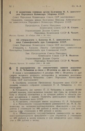 Постановление Совета Народных Комиссаров Союза ССР. О назначении генерала армии Булганина Н. А. заместителем Народного Комиссара Обороны СССР. 20 ноября 1944 г. № 1614