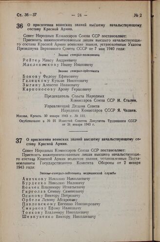 Известия Советов Депутатов Трудящихся СССР от 2 февраля 1943 г., № 26.