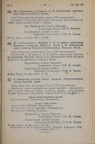 Известия Советов Депутатов Трудящихся СССР от 27 марта 1943 г., № 72.