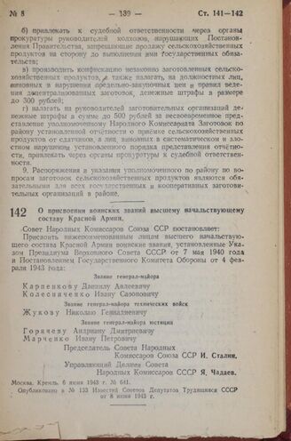 Известия Советов Депутатов Трудящихся СССР от 8 июня 1943 г., № 133.
