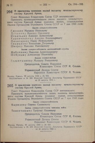 Известия Советов Депутатов Трудящихся СССР от 31 августа 1943 г., № 205.