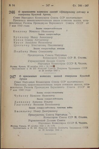 Известия Советов Депутатов Трудящихся СССР от 26 октября 1943 г., № 253.