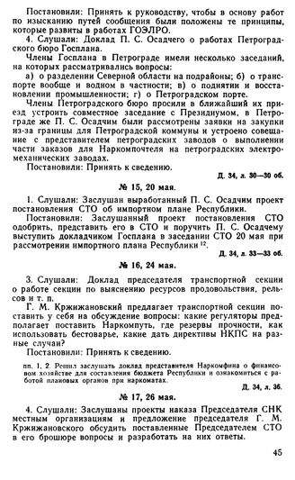 Протокол Президиума Госплана № 17, 26 мая 1921 г. // Д. 34, лл. 37—38.
