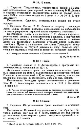 Протокол Президиума Госплана № 22, 10 июня 1921 г.