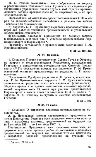 Протокол Президиума Госплана № 34, 18 июля 1921 г.