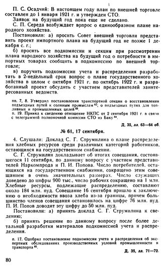 Протокол Президиума Госплана № 61, 17 сентября 1921 г. // Д. 35, лл. 71—72.
