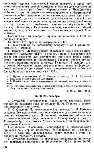 Протокол Президиума Госплана № 66, 29 сентября 1921 г. // Д. 35, лл. 131—134.