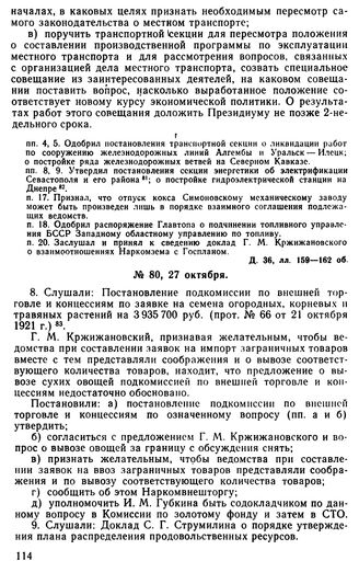 Протокол Президиума Госплана № 80, 27 октября 1921 г. // Д. 36, лл. 177—180.
