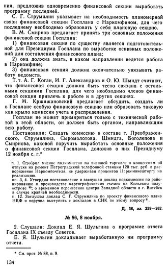 Протокол Президиума Госплана № 86, 8 ноября 1921 г. // Д. 36, лл. 273—279.
