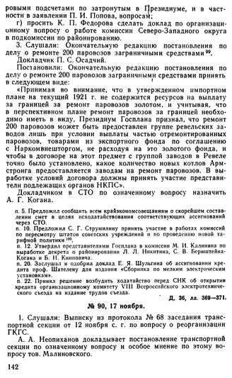 Протокол Президиума Госплана № 90, 17 ноября 1921 г.