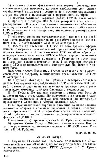 Протокол Президиума Госплана № 93, 24 ноября 1921 г.