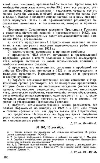 Протокол Президиума Госплана № 105, 10 декабря 1921 г. // Д. 37, лл. 186—187 об.