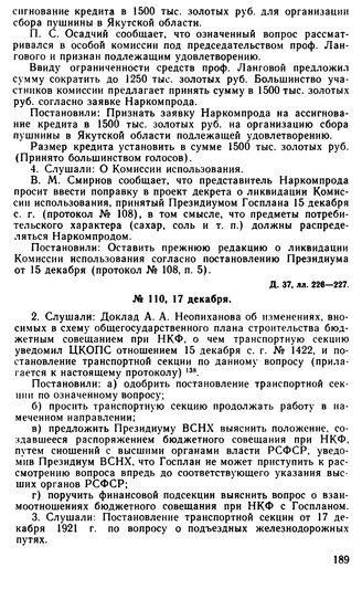 Протокол Президиума Госплана № 110, 17 декабря 1921 г. // Д. 37, лл. 229—230 об.