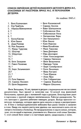 Главная Холокост в Крыму. Документальные свидетельства о геноциде евреев Кр... Документы Список еврейских детей Мамакского детского дома №1, спасенных от ра...