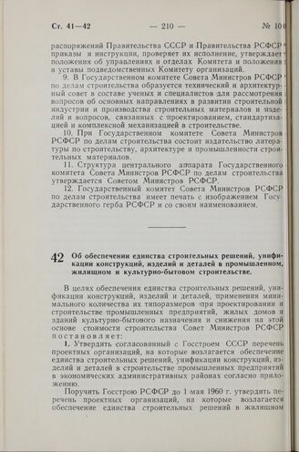 Постановление Совета Министров РСФСР. Об обеспечении единства строительных решений, унификации конструкций, изделий и деталей в промышленном, жилищном и культурно-бытовом строительстве. 29 февраля 1960 г. № 293