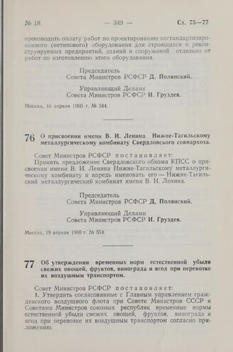 Главная Собрание законов и распоряжений правительства РСФСР и СССР Собрание законов и распоряжений Рабоче-Крестьянского Правительства ... СЗ РСФСР 1960 Собрание постановлений правительства РСФСР за 1960 г. № 1-18 Документы Постановление Совета Министров РСФСР. Об утверждении временных норм...