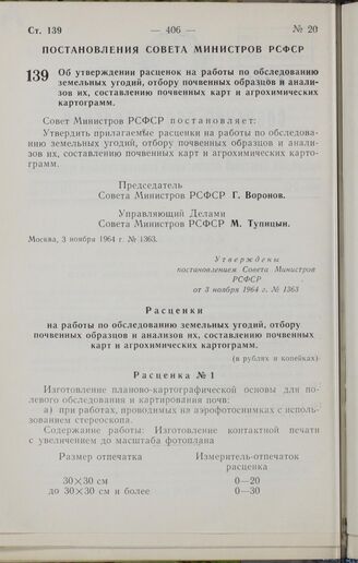 Главная Собрание законов и распоряжений правительства РСФСР и СССР Собрание законов и распоряжений Рабоче-Крестьянского Правительства ... Собрание постановлений правительства РСФСР за 1964 г. № 1-23 Документы Постановление Совета Министров РСФСР. Об утверждении расценок на ра...