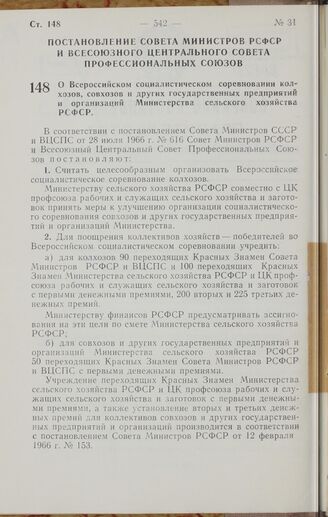 Главная Собрание законов и распоряжений правительства РСФСР и СССР Собрание законов и распоряжений Рабоче-Крестьянского Правительства ... Собрание постановлений правительства РСФСР за 1966 г. Собрание постановлений правительства РСФСР за 1966 г. № 19-33 Документы Постановление Совета Министров РСФСР и Всесоюзного Центрального Сов...