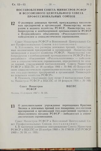 Главная Собрание законов и распоряжений правительства РСФСР и СССР Собрание законов и распоряжений Рабоче-Крестьянского Правительства ... Собрание постановлений правительства РСФСР за 1967 г. № 1-28 Документы Постановление Совета Министров РСФСР и Всесоюзного Центрального Сов...