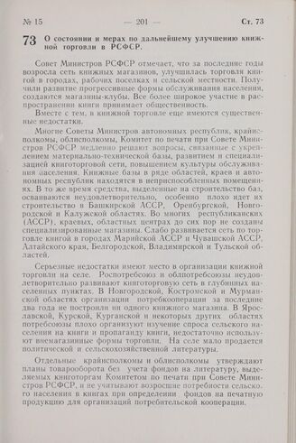 Постановление Совета Министров РСФСР. О состоянии и мерах по дальнейшему улучшению книжной торговли в РСФСР. 8 июня 1967 г. № 412