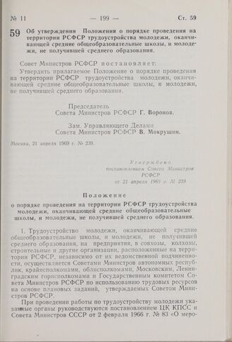 Главная Собрание законов и распоряжений правительства РСФСР и СССР Собрание законов и распоряжений Рабоче-Крестьянского Правительства ... Собрание постановлений правительства РСФСР за 1969 г. № 1-26 Документы Постановление Совета Министров РСФСР. Об утверждении Положения о по...