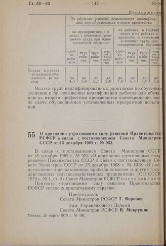 Постановление Совета Министров РСФСР. О признании утратившими силу решений Правительства РСФСР в связи с постановлением Совета Министров СССР от 15 декабря 1969 г. № 953. 25 марта 1970 г. № 181