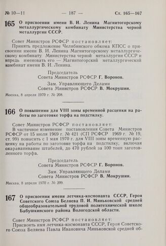 Постановление Совета Министров РСФСР. О повышении для VIII зоны временной расценки на работы по заготовке торфа на подстилку. 8 апреля 1970 г. № 209