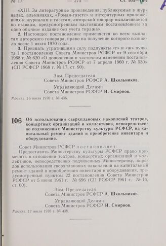 Главная Собрание законов и распоряжений правительства РСФСР и СССР Собрание законов и распоряжений Рабоче-Крестьянского Правительства ... Собрание постановлений правительства РСФСР за 1970 г. № 1-21 Документы Постановление Совета Министров РСФСР. Об использовании сверхплановы...