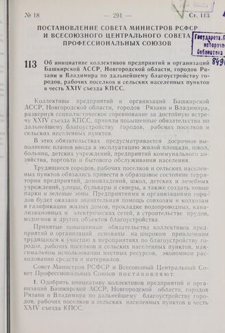 Главная Собрание законов и распоряжений правительства РСФСР и СССР Собрание законов и распоряжений Рабоче-Крестьянского Правительства ... Собрание постановлений правительства РСФСР за 1970 г. № 1-21 Документы Постановление Совета Министров РСФСР и Всесоюзного Центрального Сов...