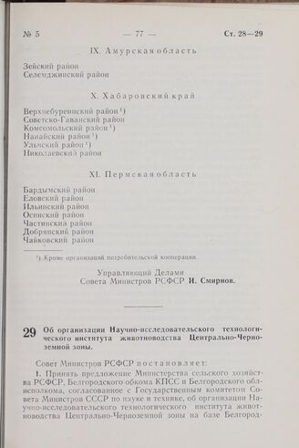 Постановление Совета Министров РСФСР. Об организации Научно-исследовательского технологического института животноводства Центрально-Черноземной зоны. 2 февраля 1971 г. № 79