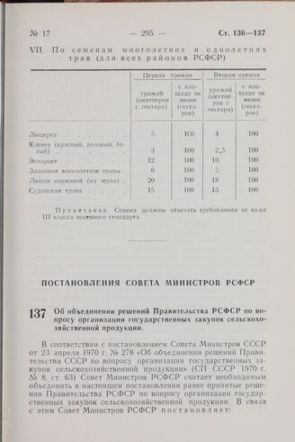 Постановление Совета Министров РСФСР. Об объединении решений Правительства РСФСР по вопросу организации государственных закупок сельскохозяйственной продукции. 17 сентября 1971 г. № 526