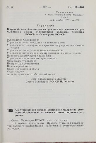 Постановление Совета Министров РСФСР. Об утверждении Правил отнесения предприятий бытового обслуживания населения к соответствующим разрядам. 30 ноября 1971 г. № 635