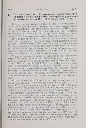 Постановление Совета Министров РСФСР. О социалистических обязательствах коллективов предприятий и организаций Главмособлстройматериалов при Мособлисполкоме на 1971-1975 годы и на 1972 год. 29 февраля 1972 г. № 137
