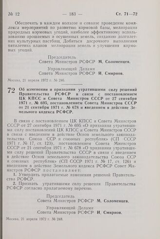 Главная Собрание законов и распоряжений правительства РСФСР и СССР Собрание законов и распоряжений Рабоче-Крестьянского Правительства ... Собрание постановлений правительства РСФСР за 1972 г. № 1-23 Документы Постановление Совета Министров РСФСР. Об изменении и признании утра...